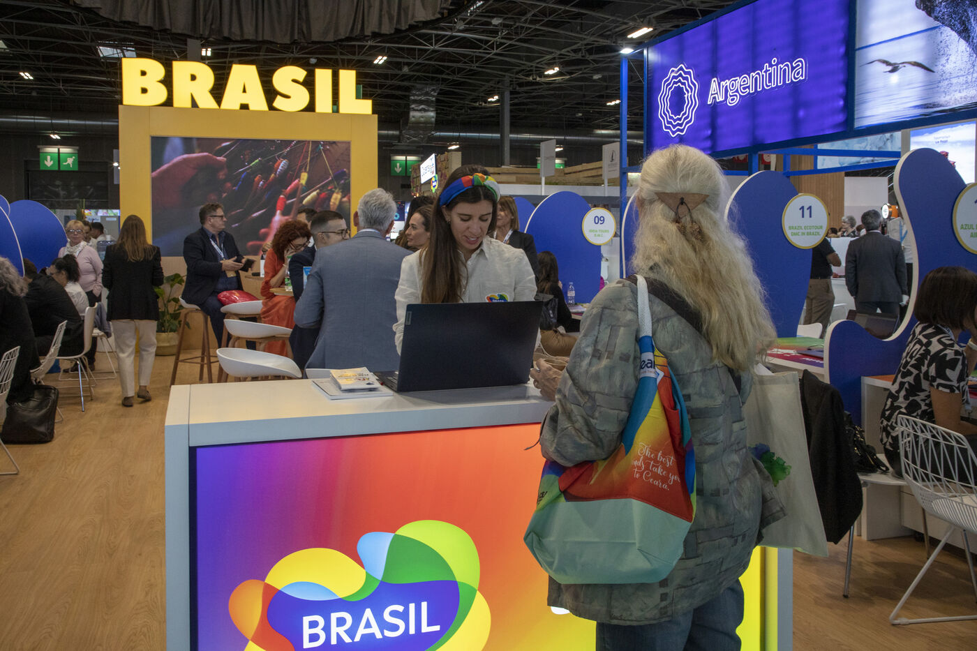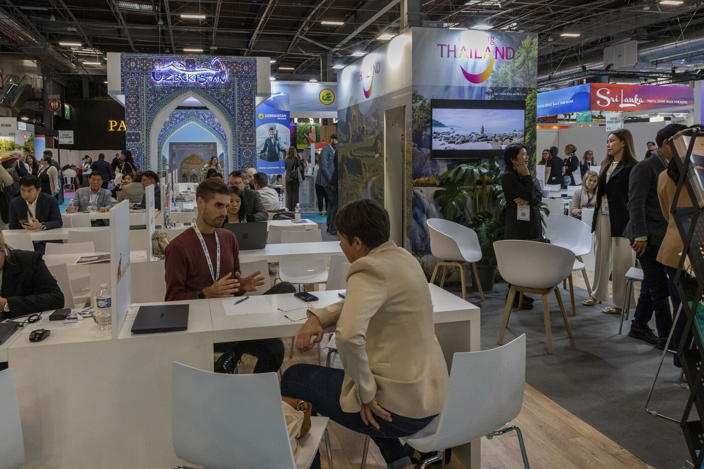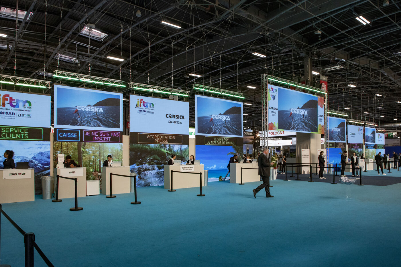 France, Paris, 2023-10-04. The 45th edition of IFTM Top Résa, International & French travel Market, the trade show for all tourism professionals in France, opened its doors on October 3 and will run until October 5 at Paris - Porte de Versailles, with the theme "Challenges and resilience". 200 destinations and 1,700 brands are represented, including Jordan, the country of honor for this 2023 edition. Over 34,000 visitors are expected. Photograph by Caroline Paux / Hans Lucas.