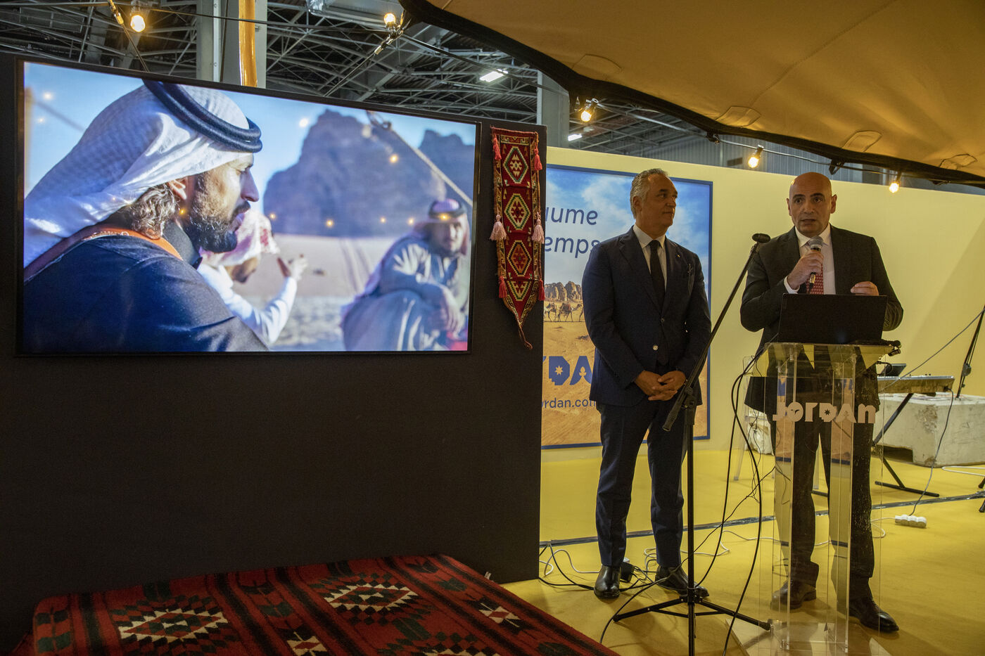 France, Paris, 2023-10-04. La 45e édition de l?IFTM Top Résa, International & French travel Market, le salon de l?ensemble des professionnels de l?industrie du tourisme en France, a ouvert ses portes le 3, jusqu'au 5 octobre, à Paris - Porte de Versailles avec, comme fil rouge ?défis et résilience?. 200 destinations et 1 700 marques sont représentées, dont la Jordanie, pays mis à l?honneur pour cette édition 2023. Plus de 34 000 visiteurs sont attendus. Photographie par Caroline Paux / Hans Lucas.