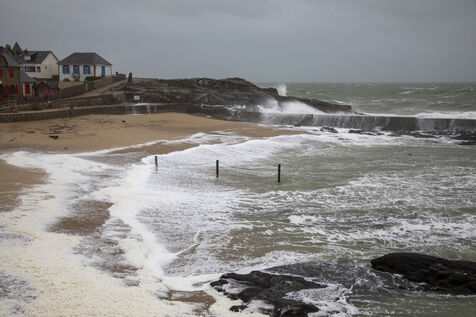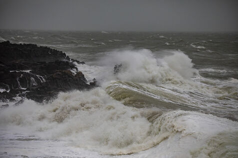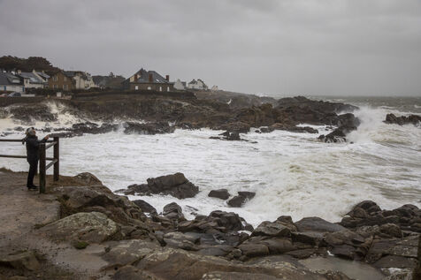 France, Batz-sur-Mer, January 2, 2024. With heavy swells, rain and strong winds, the west coast is experiencing a variety of storms, as in Loire-Atlantique, which has been placed under orange alert, particularly in Batz-sur-Mer and Le Croisic. Photography by Caroline Paux/Hans Lucas.