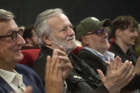 France, La Baule, 29-06-2024. A l?occasion du Festival Cinéma & Musique de film de La Baule, Claude Lelouch, invité d?honneur, a participé à une master class au cinéma le Golf Stream. Parmi les invités dans la salle, l?acteur Francis Huster et le compositeur Didier Barbelivien.