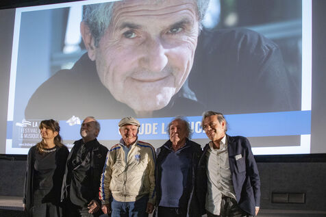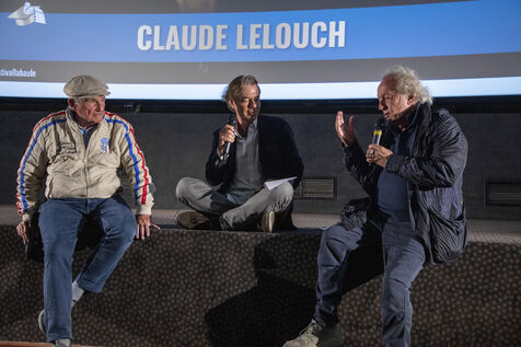 France, La Baule, 29-06-2024. On the occasion of the La Baule Film & Music Festival, guest of honor Claude Lelouch took part in a master class at the Golf Stream cinema. Guests included actor Francis Huster and composer Didier Barbelivien.