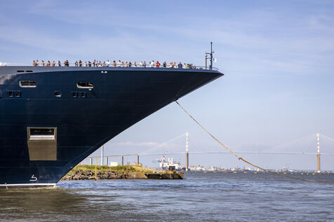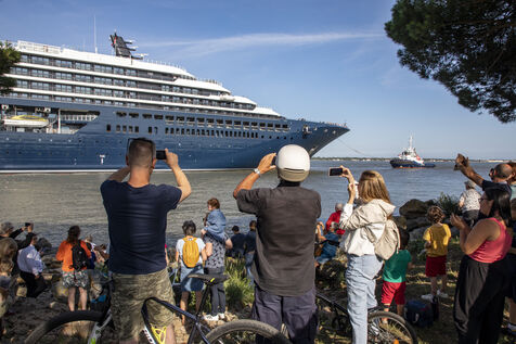 The Ilma, a 241-meter-long luxury superyacht belonging to the Ritz-Carlton hotel chain and built by Chantiers de l'Atlantique, left the port of Saint-Nazaire on Tuesday, July 23, 2024. This 224-suite luxury ocean-view liner is powered by LNG gas-fuel. After an inaugural voyage in early September from Monte Carlo, the Ilma will tour the Mediterranean basin, then the Caribbean and Northern Europe in summer 2025. Photography by Caroline Paux / Hans Lucas