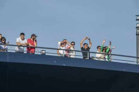 L'Ilma, un superyacht de luxe de 241 mètres de longueur, appartenant à la chaîne hôtelière Ritz-Carlton et construit par les Chantiers de l ? Atlantique, a quitte le port de Saint-Nazaire, mardi 23 juillet 2024. Ce paquebot de 224 suites de luxe avec vue sur mer est propulsé au gaz-fuel GNL. Après un voyage inaugural début septembre depuis Monte Carlo, l'Ilma tournera sur le bassin méditerranéen puis les Caraïbes et en Europe du Nord à l'été 2025. Photographie par Caroline Paux / Hans Lucas