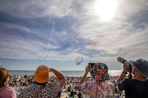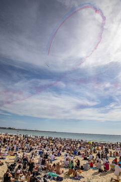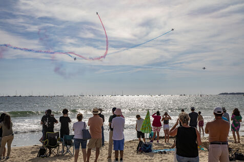 This event marked the end of summer in Pornichet and along the Loire coast: the fifth edition of Pornichet Plein Vol, France's largest air show, flew over La Baule Bay, one of the most beautiful bays in the world, on Saturday, August 23, 2025. The highlight was the maneuvers of the Patrouille de France's Alpha jets, a demonstration of the Dauphin 35F helicopter, the Airbus A400M Atlas, the ATL2 maritime patrol aircraft, the French Air and Space Force aerobatic team, and the Phoenix parachute team. Photography by Caroline Paux / Hans Lucas
