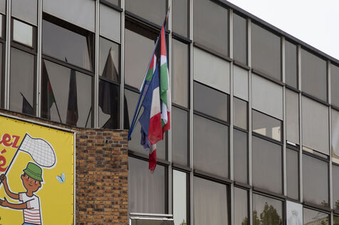 The Palestinian flag hoisted on the front of the town hall between the French and European flags in Malakoff in France on Saturday, September 20, 2025. The prefect of Hauts-de-Seine, following instructions from the Ministry of the Interior, asked the mayor, Jacqueline Belhomme, to remove the flag, failing which he would urgently refer the matter to the administrative court of Cergy-Pontoise on grounds of secularism.