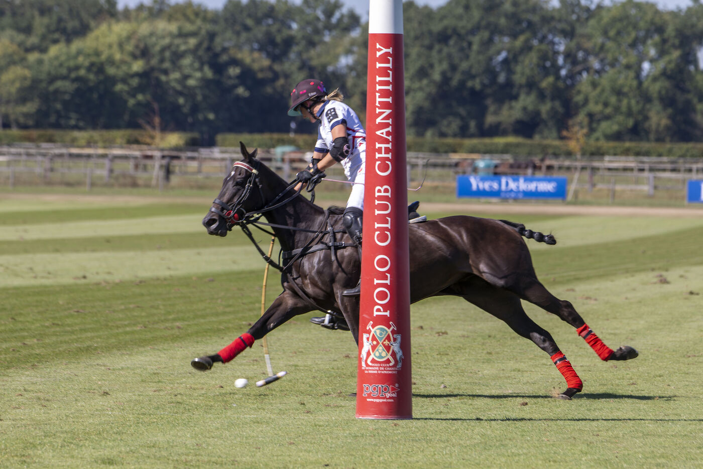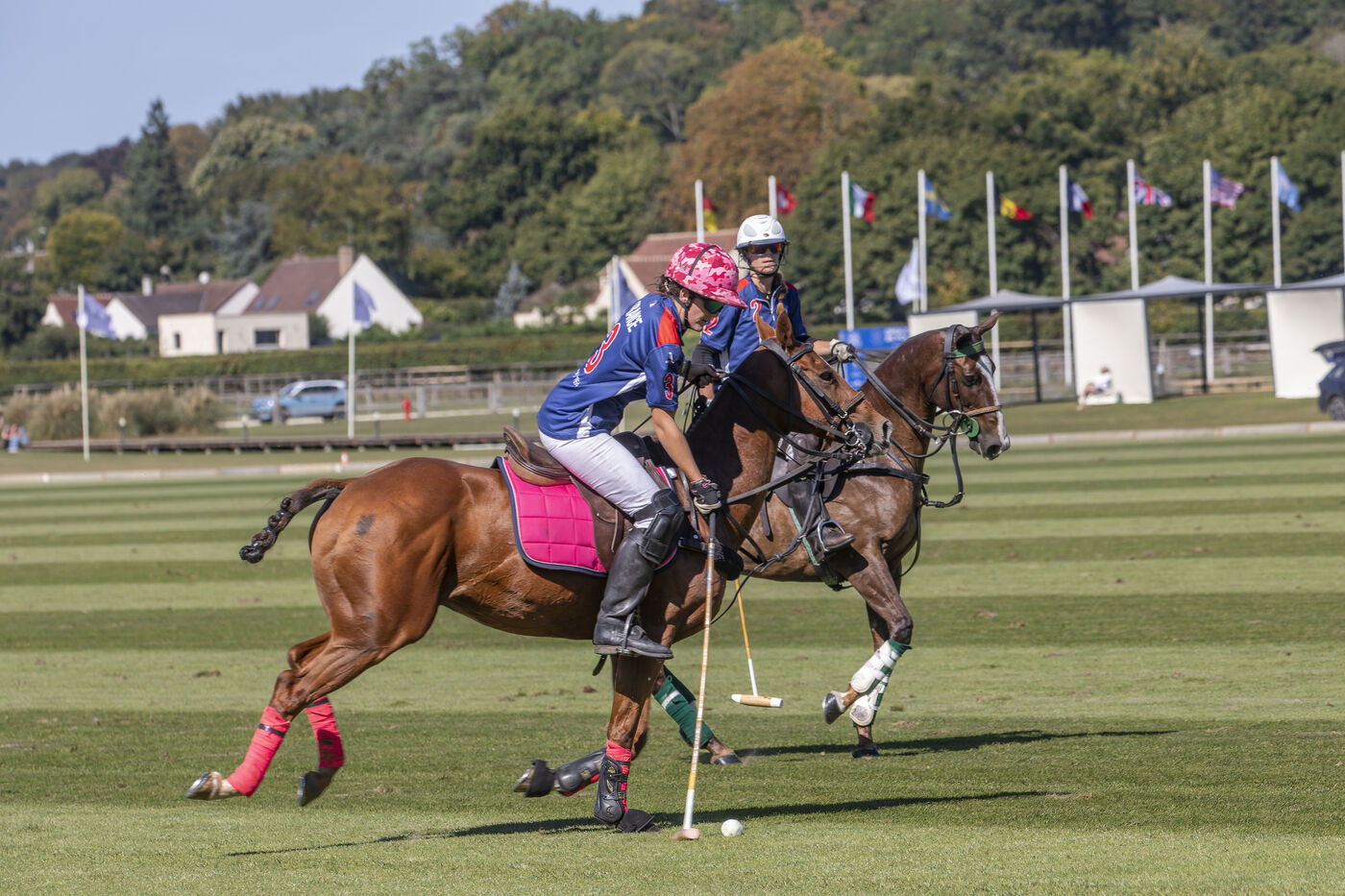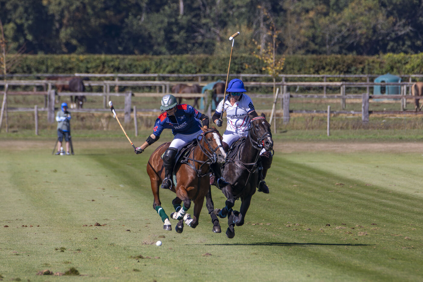 Test match between the French women's polo team and England at the Polo Club du Domaine de Chantilly in Appremont, France, on Friday, September 18, 2025. The French women played a strong game and pulled off a surprise victory, beating their opponents 6.5 to 5 in an impressive feat. Photo by Caroline Paux / Hans Lucas