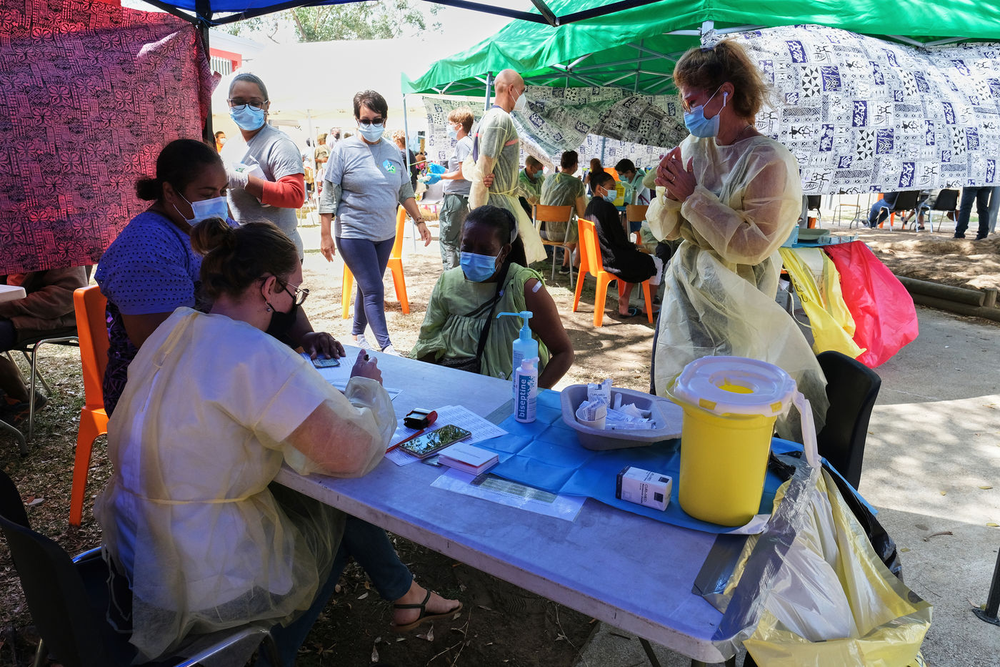 Noumea, New Caledonia, 2021-09-24. A COVID-19 vaccination center has been set up on the outskirts of Tours Magenta in the northeast of the city of Nouméa. In recent weeks, New Caledonia has lost its covid-free status and the virus is progressing rapidly across the territory. The government of New Caledonia has set up an intense vaccination campaign, in the cities and in the bush, to ensure that as many people as possible get vaccinated against Covid-19.