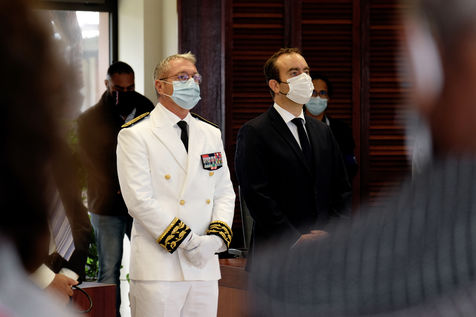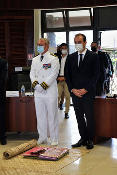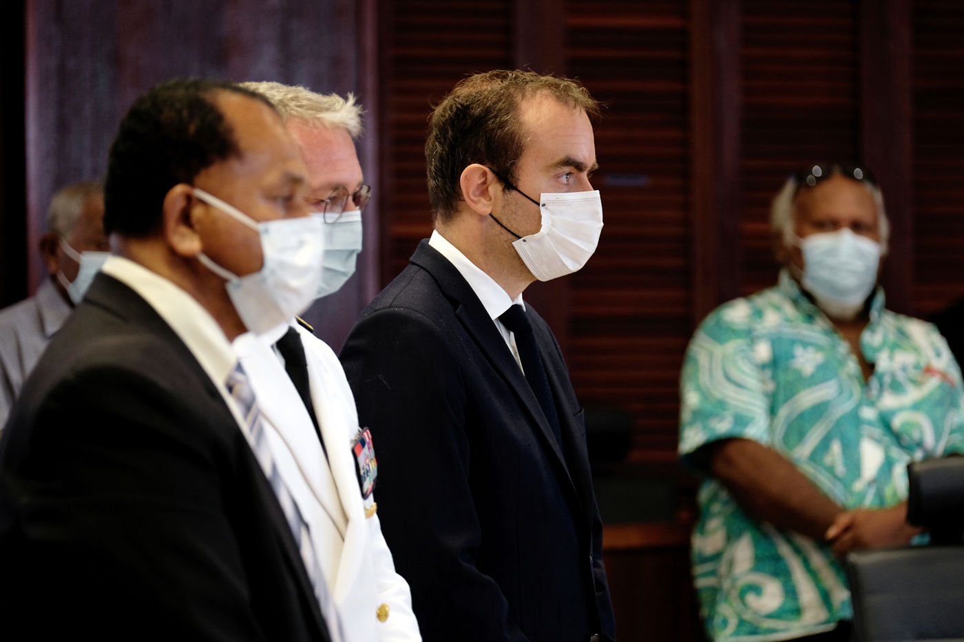 Overseas Minister Sébastien Lecornu is on a official visit to New Caledonia to mesure the lenght of the health crisis due to the COVID-19 pandemic and to anticipate the organization of the 3rd referendum of self-determination or so called "Independance" of the territory which will take place on December 12. During his first day of official visit, the Minister first went to the "Coutumier" Senat also knowed as The House of the Ceremonial of Giving to perform a "Coutume" : a sign of respect, humility and welcome in the presence of Yvon Kona, President of the "Coutumier" Senate and Patrice Faure, High Commissioner of the French Republic in New Caledonia.