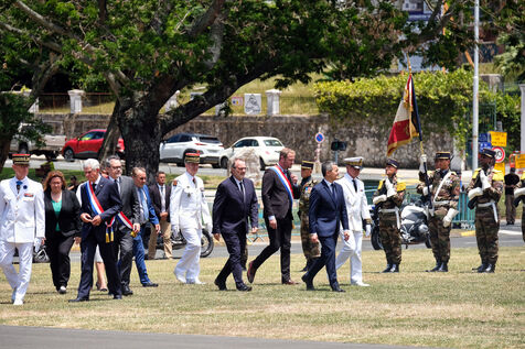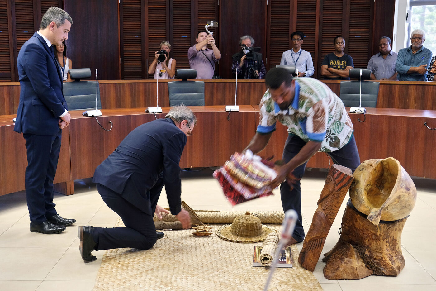 The Minister of the Interior and Overseas Territories Gérald Darmanin and the Minister Delegate in charge of Overseas Territories Jean-François Carenco lay a wreath at Place Bir-Hakeim in Noumea during their first joint official visit to New Caledonia, and then perform a custom welcome ceremony at the Customary Senate.