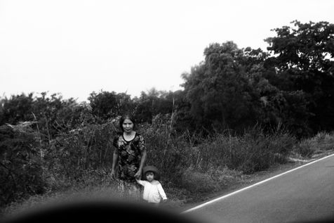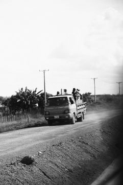 J'étais la personne de passage. Celle qui, à aucun moment, ne s'encre dans le paysage. Comment alors « respecter la juste distance » , celle qui me permet de « respecter l'humanité de l'autre »... (Dominique Baqué, Histoires d'ailleurs, Artistes et penseurs de l'itinérance, Editions du Regard, Paris, 2006)