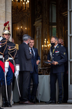 Le Président de la République Emmanuel Macron reçoit à l'Elysée le Premier Ministre de la République du Kosovo, Mr Albin Kurti pour un entretien.