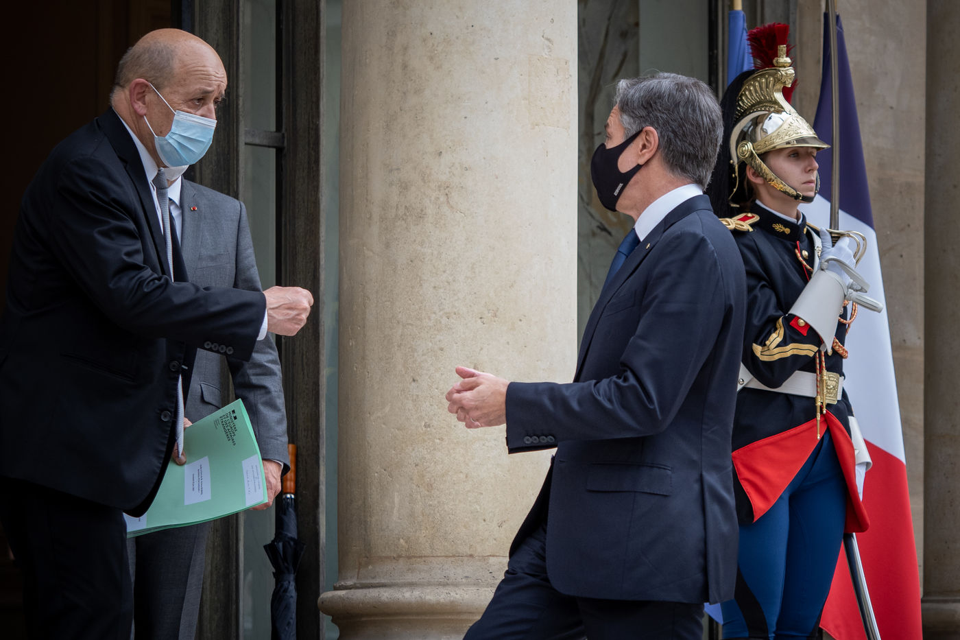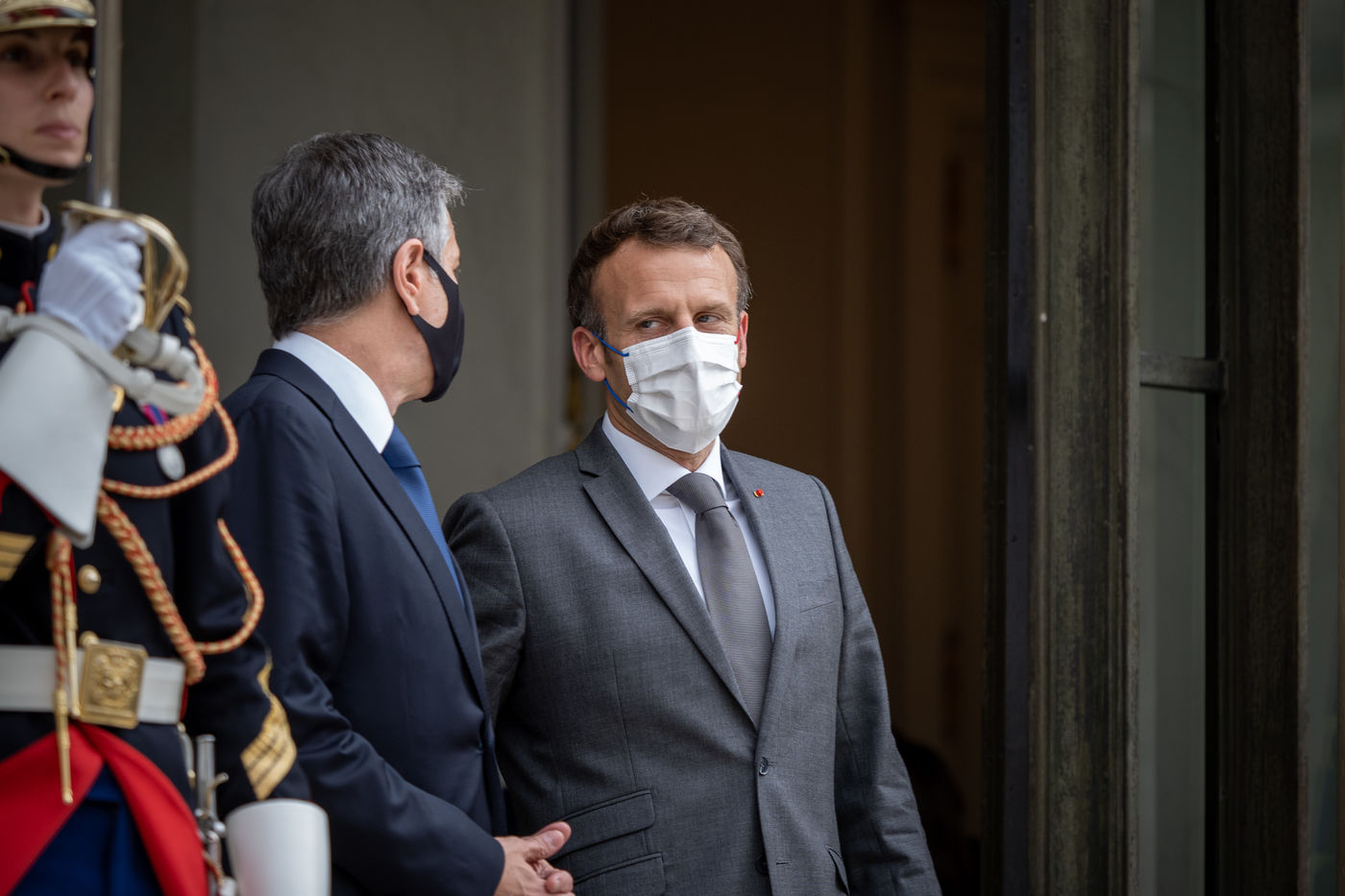 Mr. Antony Blinken, Secretary of State of the United States of America, was welcomed on the steps of the Eysée Palace and met with President Emmanuel Macron.