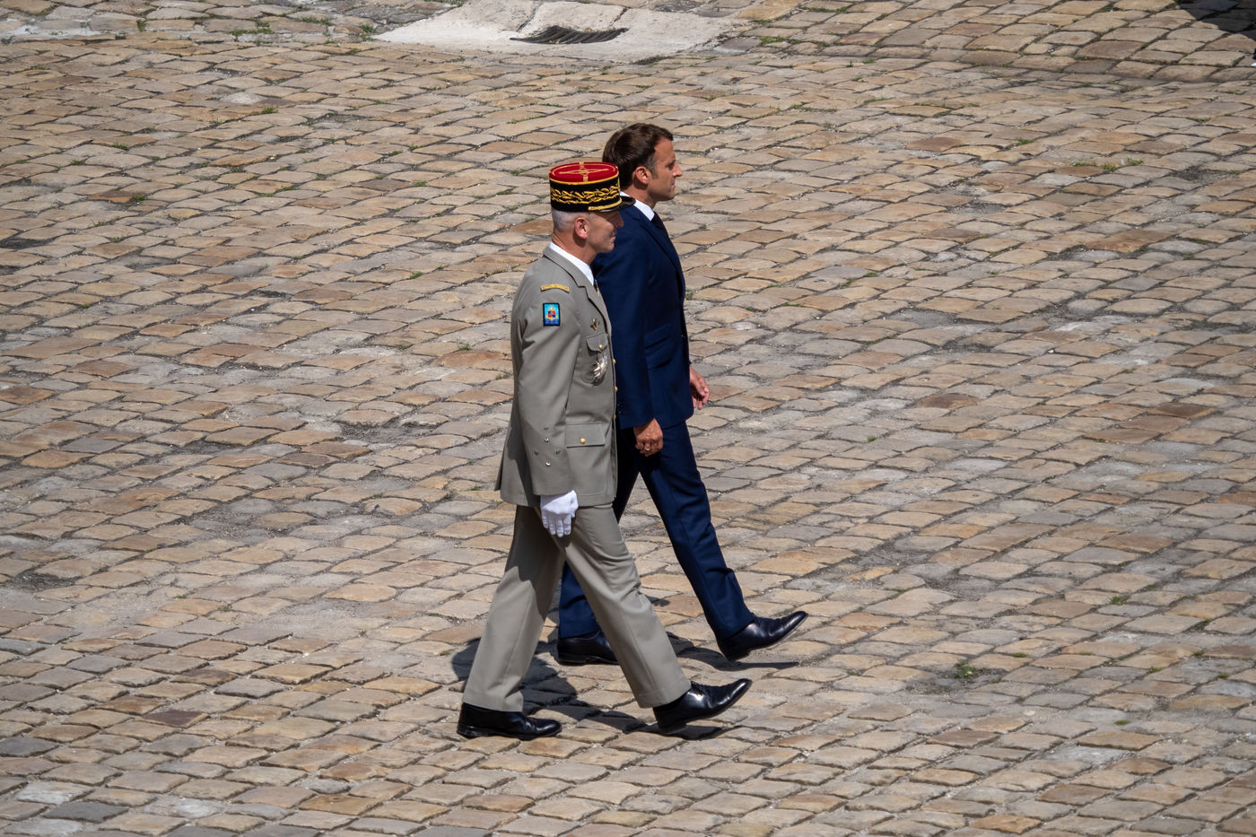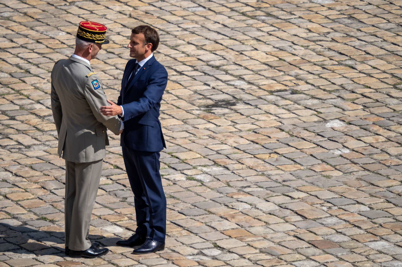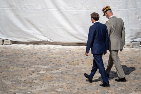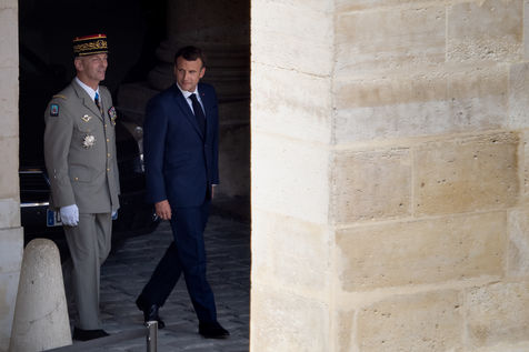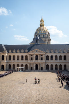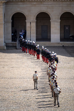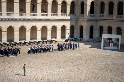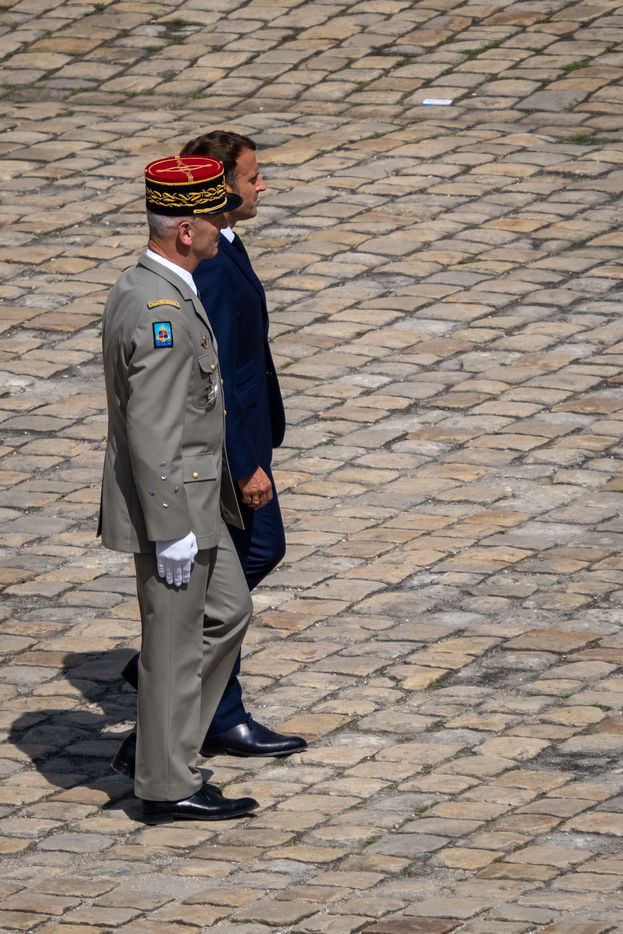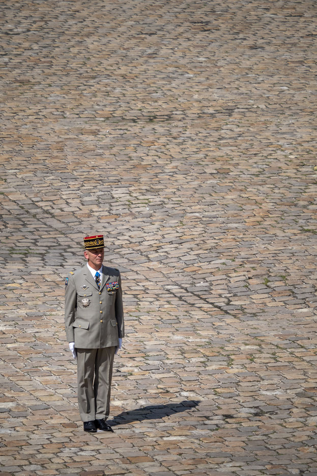 Cérémonie d'Adieu aux armes du Chef d'Etat Major Francois Lecointre, présidée par Emmanuel Macron à l'Hôtel National des Invalides.