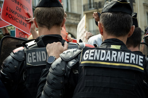 Rally called by police union to protest against the indictment for voluntary manslaughter of their colleague implicated in the death of two people on the Pont Neuf on April 24. On the opposite sidewalk a counter-demonstration quickly channeled.
