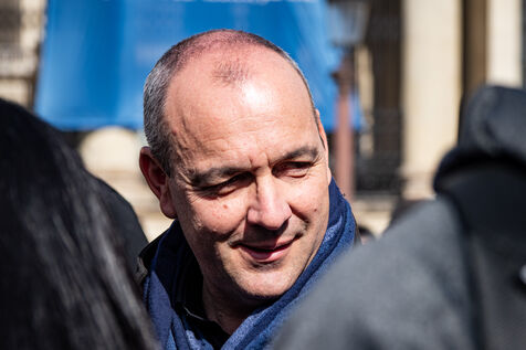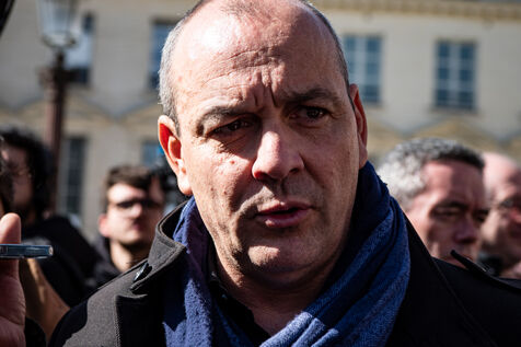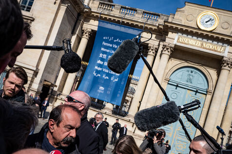 Press conference of the union representatives in front of the national assembly before the announcement of the 49-3.