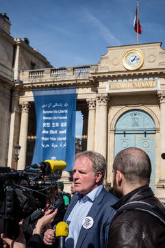 Conférence de presse des représentants syndicaux devant l'assemblee nationale avant l'annonce du 49-3.