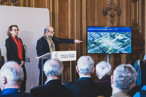 Anne Hidalgo, Mayor of Paris unveils the winning project for the redevelopment of Place de la Concorde.