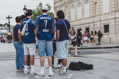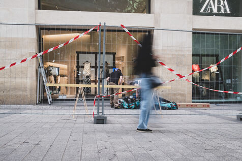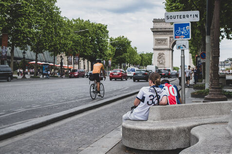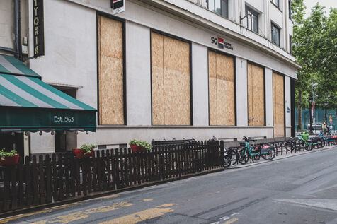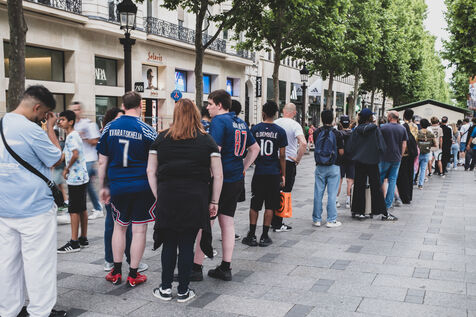 Jour J, les Champs Elysées se préparent pour le match du PSG en finale de la Champions League. Les boutiques protègent leurs vitrines, les supporters arborent leurs maillots.