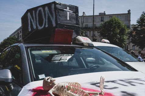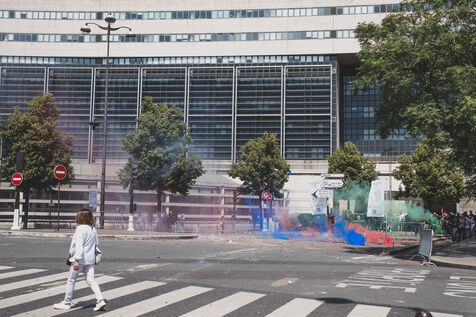 Cab drivers are staging another protest against the new CNAM agreement, blocking streets and avenues in front of Bercy and the Ministry of the Economy.