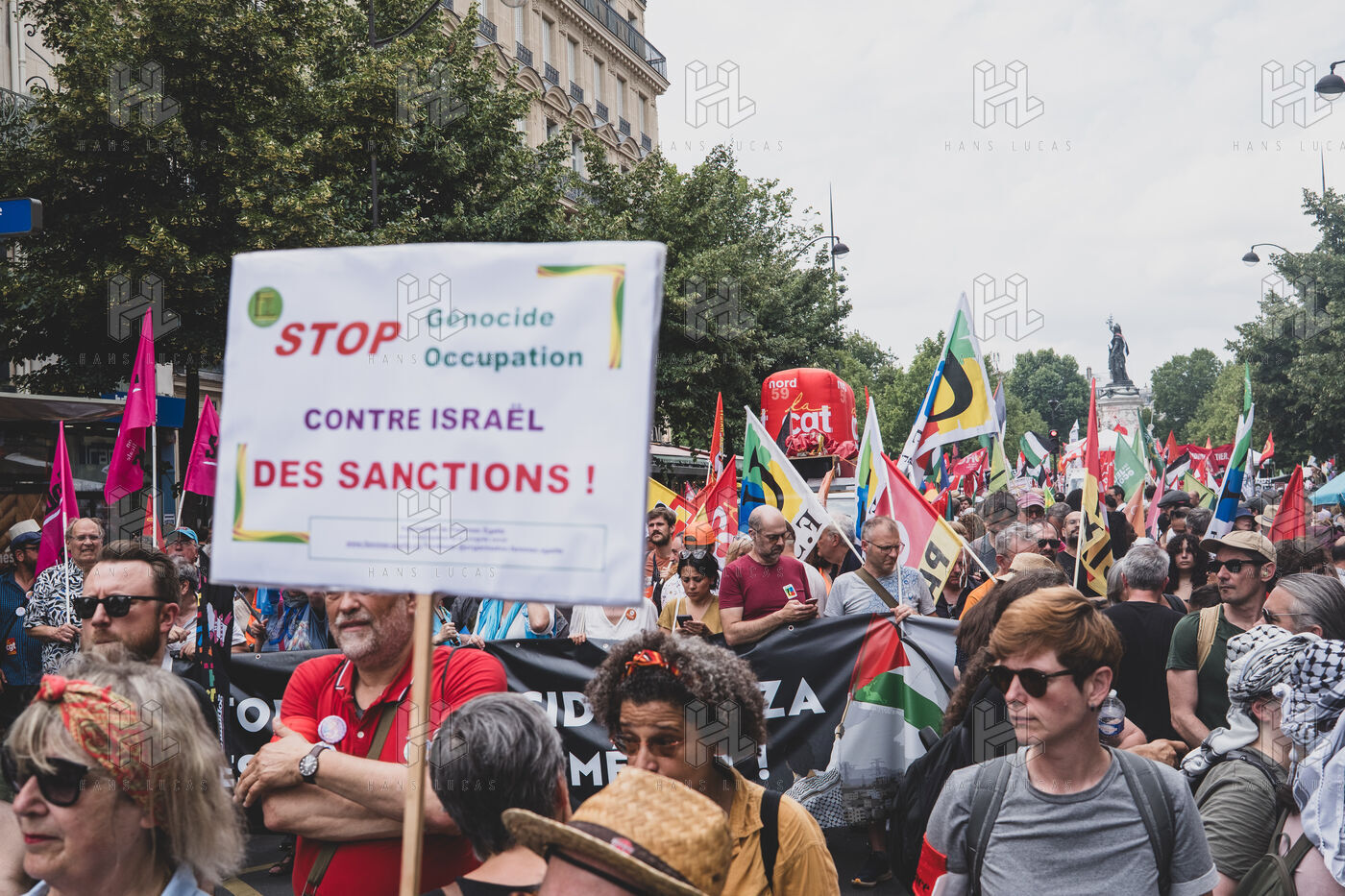 Five trade unions - CFDT, CGT, Unsa, Solidaires and FSU - joined by left-wing parties such as LFI, PS, PCF and EELV, called for "massive" mobilization as part of a worldwide weekend of mobilizations in support of Palestine.