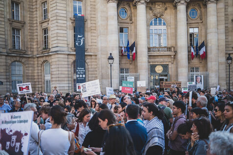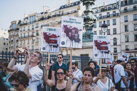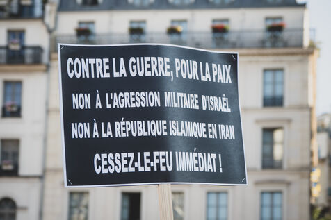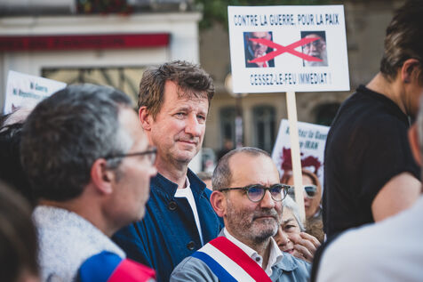 Rassemblement pour la paix au proche et moyen orient en présence de deputes LFI, La France Insoumise, PS, Parti Socialiste et EELV, Europe Ecologie les verts après les bombardements entre Israel et l'Iran.