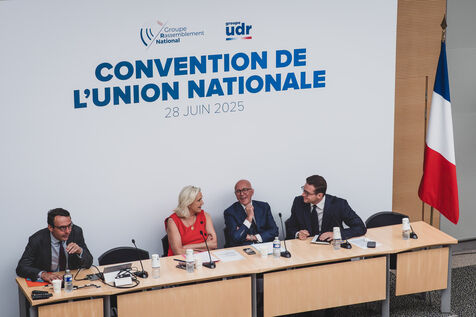 Convention de l'union nationale, Rassemblement National, RN et Union des Droites, UDR avec Marine Le Pen, Jordan Bardella et Eric Ciotti à l'Assemblée Nationale.