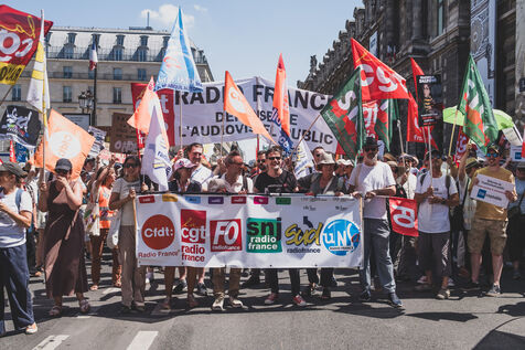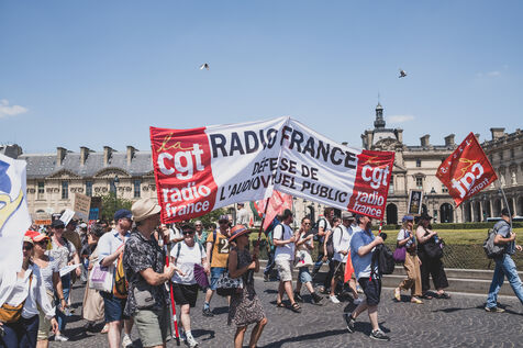 Manifestation contre le projet de loi actant la création d’une holding rassemblant France Télévisions, Radio France et l’INA porté par la Ministre de la culture Rachida Dati.