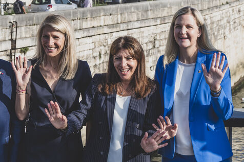 In the presence of IOC President Kirsty Coventry, Tony Estanguet and Sports Minister Marie Barsacq, Anne Hidalgo, Mayor of Paris, honors the great markers of the Olympic legacy on the Pont Saint Louis.