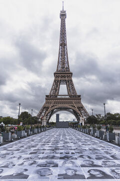 The Antoine Alleno Association and artist JR have joined forces for a temporary artwork called Alive, in which 1,330 portraits of relatives of road accident victims are stuck to the Iena's bridge pavement. This initiative aims to make these invisible families visible.