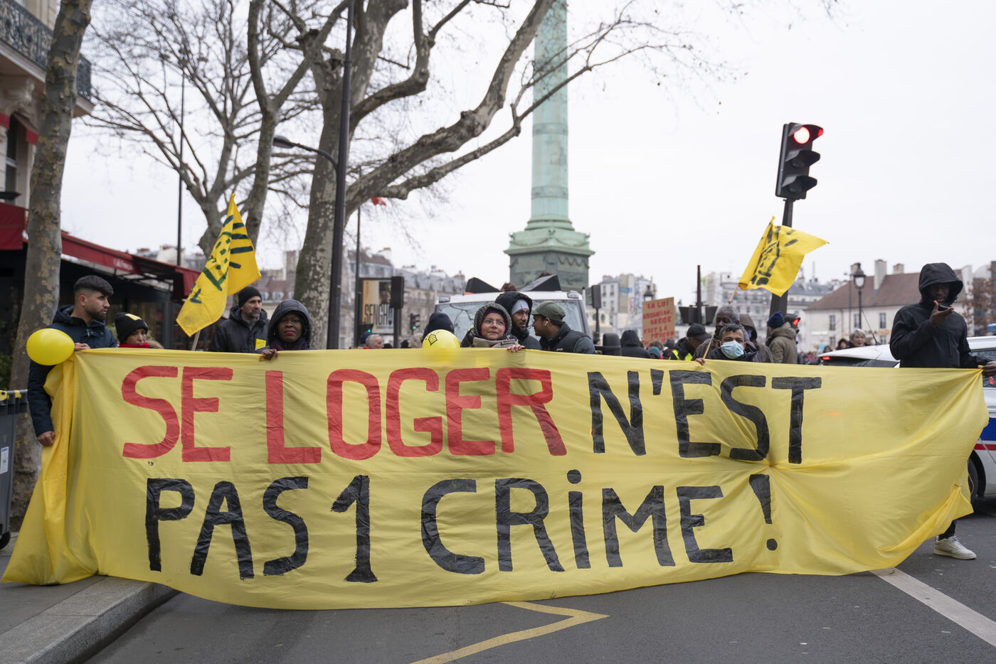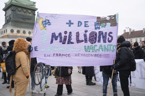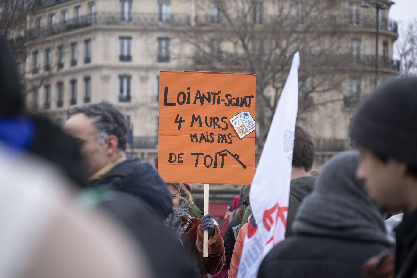 Manifestation contre la loi Kasbarian, loi anti squat, qui est actuellement discuté au Sénat et qui envisage de punir plus sévèrement les squatteurs.