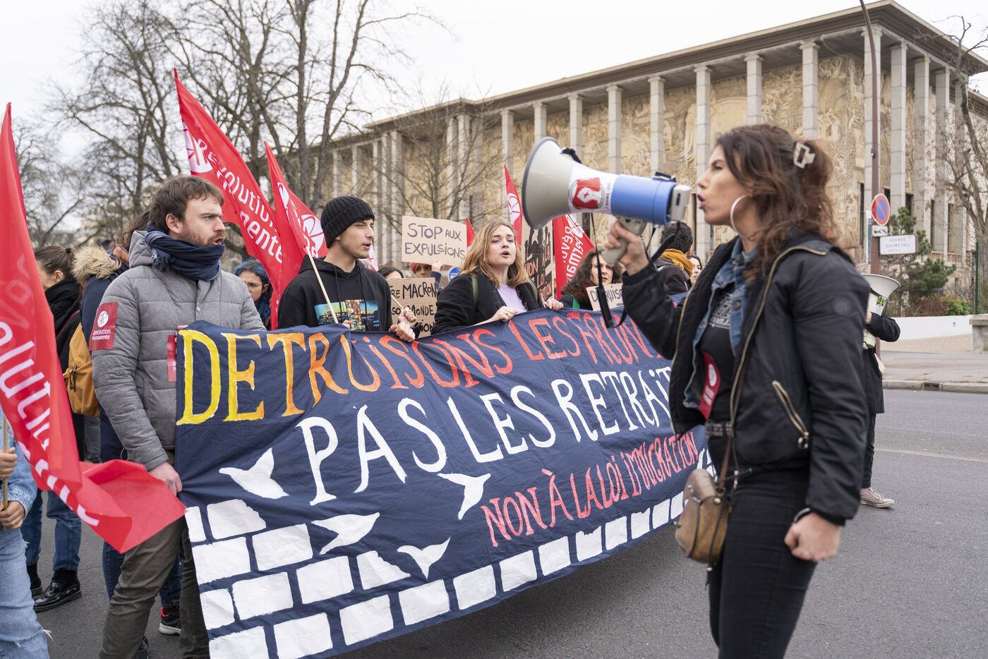 Demonstration against administrative detention centers and the Darmanin law in Paris from Porte Dorée to the CRA in Vincennes.