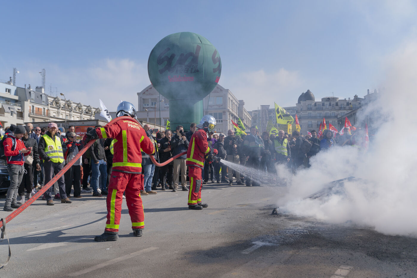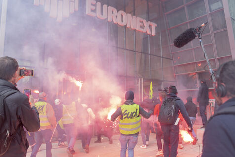 Interprofessional AG called by Sud Rail and Solidaires followed by an action on Euronext at La Défense against the pension reform.