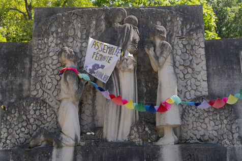 Rassemblement lors de la fête des mères au jardin du Monument aux Mères Françaises, organisé par l'AG Féministe Paris Banlieues.