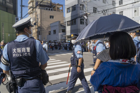 Le Tenjin matsuri est un festival important d'Osaka, après une procession, environ 3 000 personnes défiles en tenue d'époque dans les rues, suivis d'une parade nautique et d'un grand feu d'artifice d'une heure et demie.