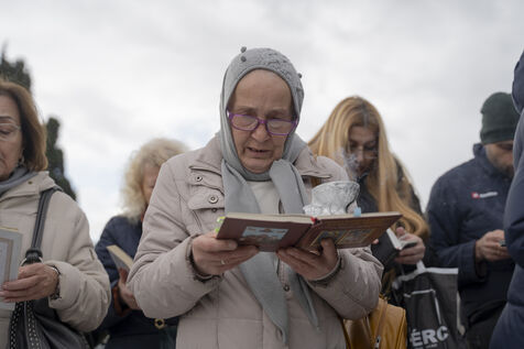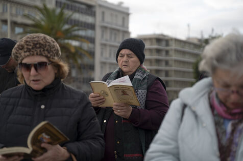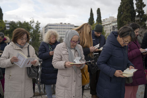 Protesters from orthodox religions met in front of Parliament where the law for the marriage of couples of the same sex was being debated at the same time.