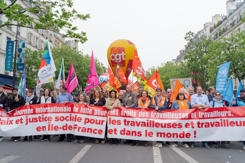 Political figures during the May 1 demonstration, LFI, Ecologist and CGT