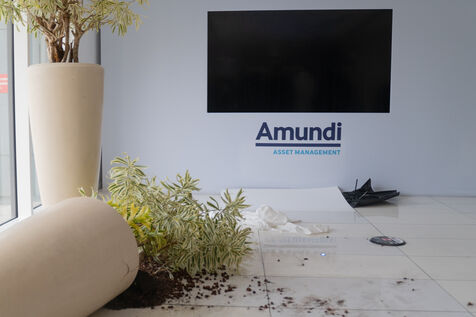 Action d'Extinction Rebellion devant le siège d'Amundi pendant la 100eme assemblée générale des actionnaires de Total.