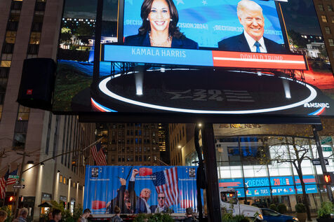 Toute la soirée, des écrans géants devant le Rockefeller Center ont diffusé les premiers résultats en direct. Des Américains, pour la plupart supporters de Kamala Harris, se sont rassemblés pour regarder les résultats.