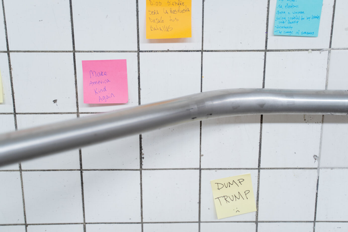Suite de la victoire présidentielle de Donald Trump, Matthew Chavez, l'organisateur de « Subway Therapy », a mis en place dans le couloir du métro de Manhattan (de la 14e rue entre la sixième et la septième avenue), des post-it à disposition des usagers du métro pour ainsi espérer les libérer un peu de leurs angoisses.