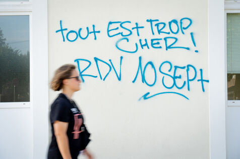 Graffiti displaying the message "Block everything" in reference to the planned protest on September 10, 2025 in France.