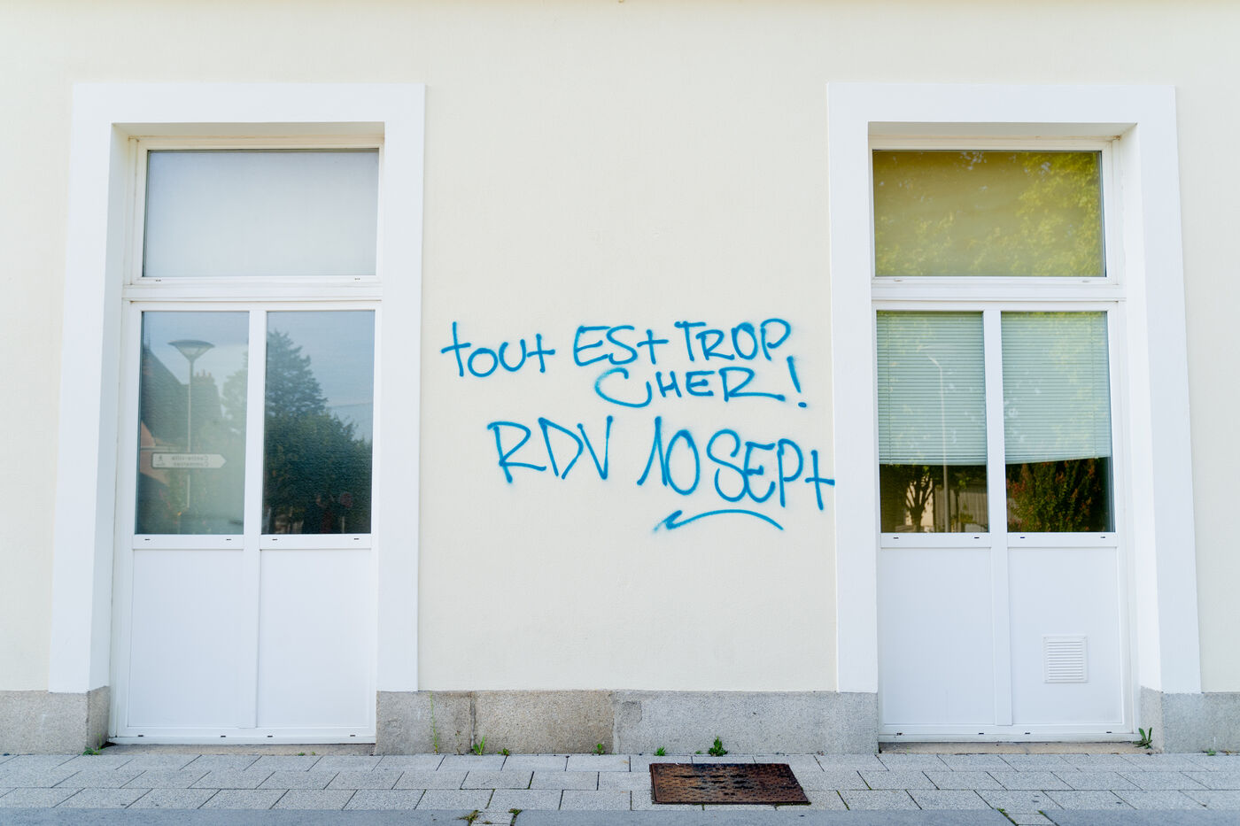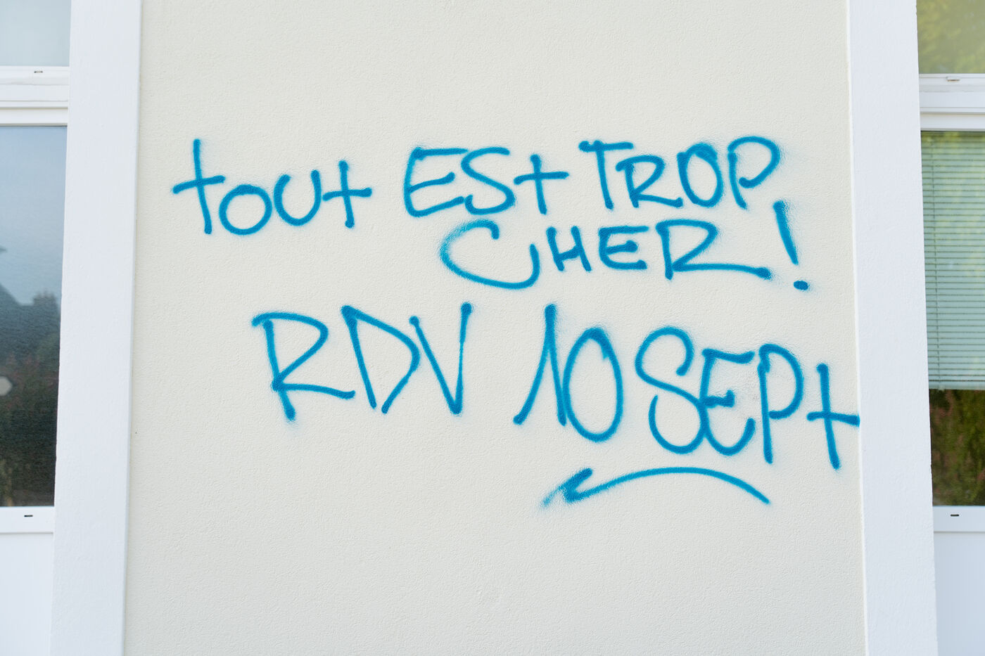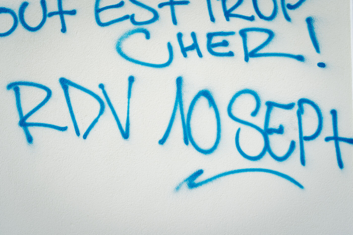 Graffiti reprenant l'appel à "Tout bloquer" le 10 septembre 2025 en France.
