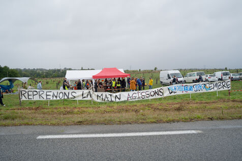In Châteaugiron, a small town in the Ille-et-Vilaine department, individual activists organized a gathering near the Hyper U supermarket, and then held a demonstration on a main road in the town, following the "Block Everything" movement, on September 10th. They set up a camp near the road, which they called the "Village of the Outraged."