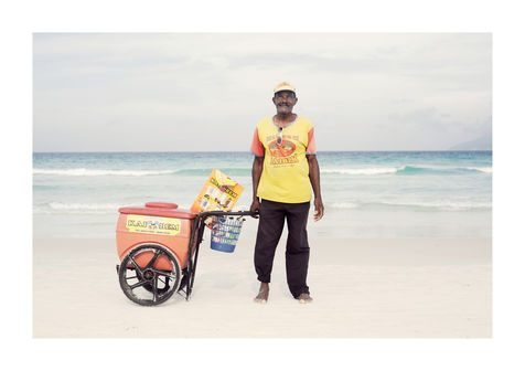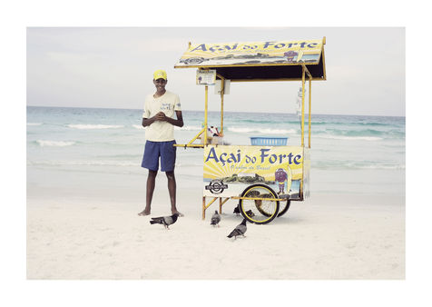 Praiabalhadores, a portoguese portmanteau of praia (beach) and trabalhadores (workers), is the curious coinage I adopted fir this documentary series cataloguing the beach vendors of Praia do Forte. This idyllic beach in Cabo Frio, a small town near Rio de Janeiro, sees an array of vendors touting their wares and refreshements, which was an irresistible draw for me. My work is always been shaped by a fascination with human relationship.