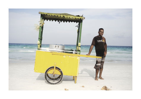 People on the beach only think about themselves and don't pay the workers any attention, as if they were just a part of the scenery. But they are not. Their « caddies » were so colourful and full of different stuff. So aesthetically perfect.