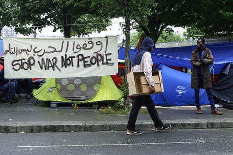 Dans la « ville refuge » que voudrait incarner Paris, c'est désormais une lutte permanente que mènent les exilés et leurs soutiens pour ne serait-ce qu'avoir le droit de poser une tente, ou même posséder un sac de couchage, ou dormir à même le bitume sans en être délogé.
