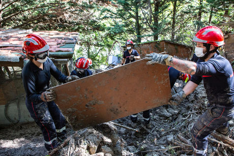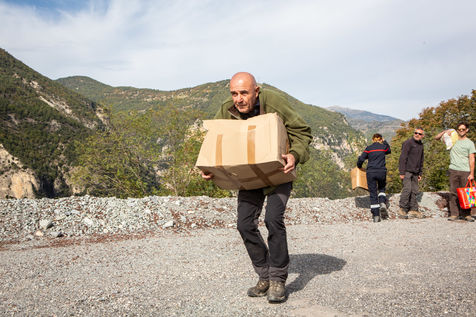A small team of volunteer firefighters helps the affected population in Clans in the Tinée valley. Collapsed houses, landslides, cut roads, torn networks, shocked population. They are present every day as close as possible to the population to help, listen and find solutions according to priorities. They are the closest and the most responsive in these remote regions of the Alpes-Maritimes in the heart of the disaster.