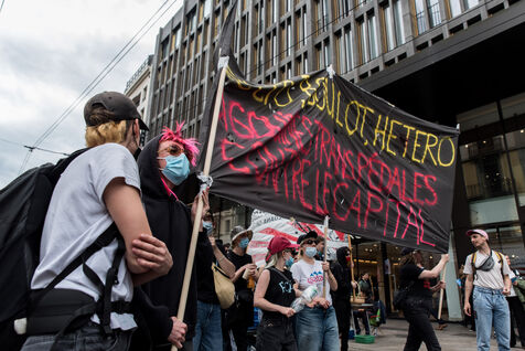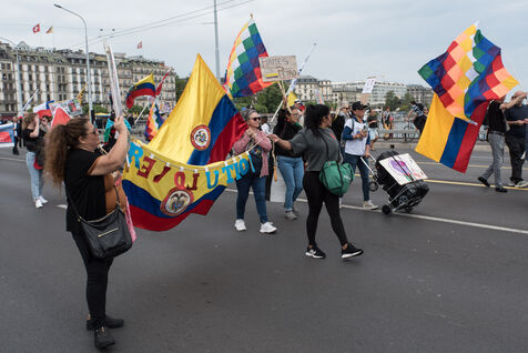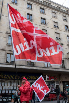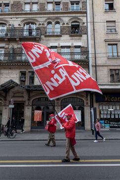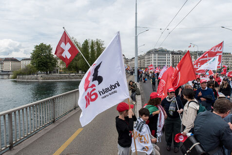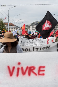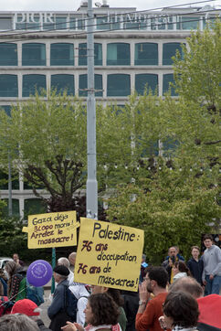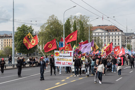 Despite the fact that May 1st, Labor Day, is not a public holiday in Geneva, Switzerland, the population nevertheless gathered to march in procession and make various demands. At the head and end of the cortege, a pro-Palestinian bloc was very much in evidence.