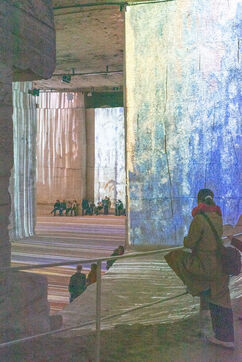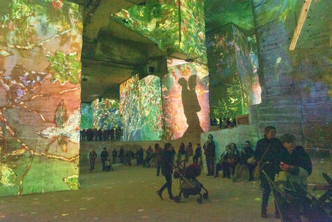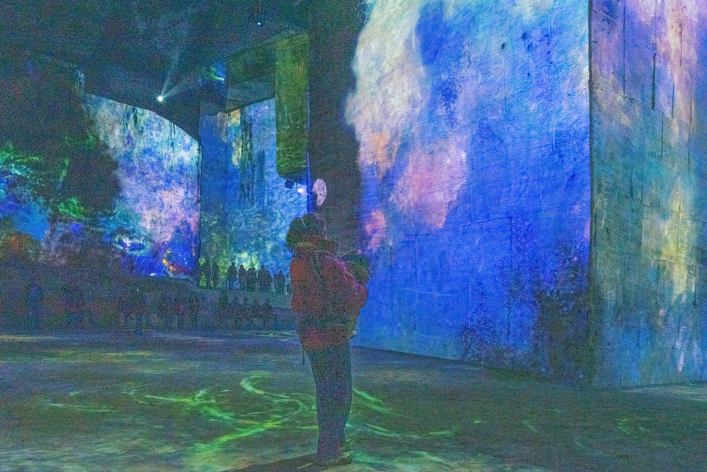 It's high, big, dizzying. Between silence and sound, vertigo and light, shadows wander. Looking up to the sky, to the right, to the left. The Carrières des Lumières offer an immersive experience where everything becomes a gigantic work of art. Each spectator finds themselves in the impressionist canvases of Claude Monet or in the dreams of Henri Rousseau. Their art dances from floor to ceiling, a suspended moment where calm and wonder take over. Plunged into the darkness, they allow themselves to dream, to smile, to contemplate, finally becoming part of the scenery.