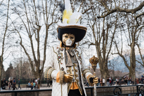 Elegant, mysterious, bewitching. Every year, strange creatures turn the Venice of the Alps into a life-size theatre for three days. In Annecy, crowds flock to watch the astonishing Venetian Carnival parade, where dozens of costumed protagonists stroll along the lakeshore and canals. Colourful masks, beads and jewels, feathers and sequins, these are moments when time stands still, devoted to wonder and beauty.