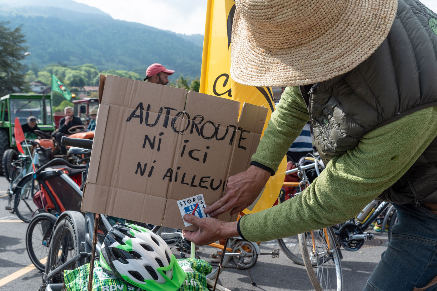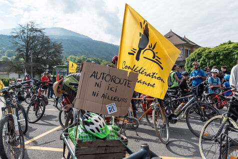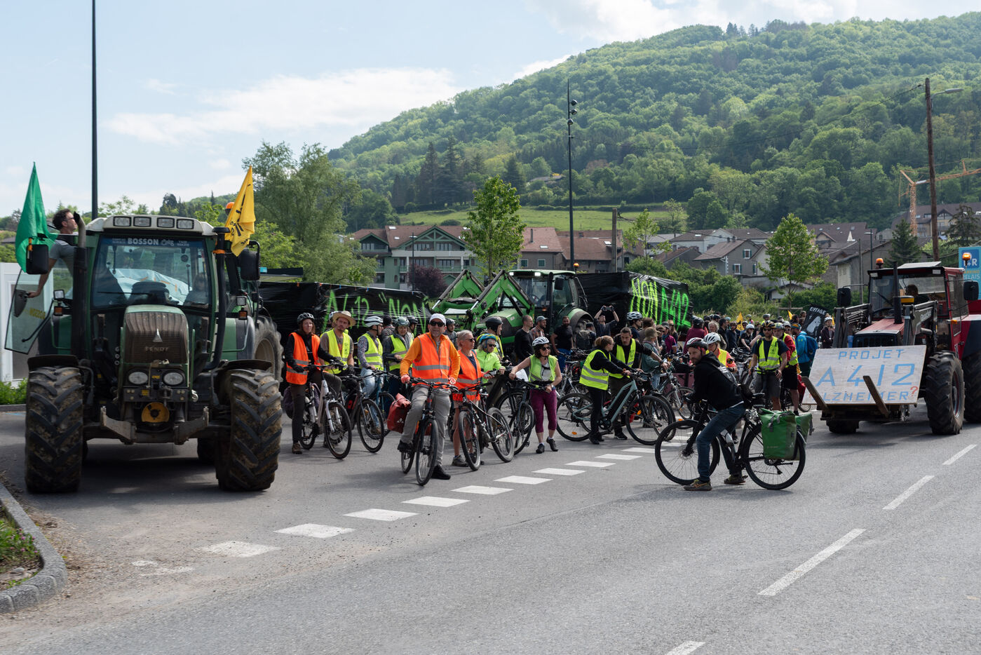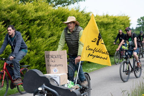 In the Chablais region of Haute-Savoie, a "rally and festive convoy against the A412" was organised by La Confédération paysanne 74, Les Ecologistes des Pays de Savoie and ACPAT (Association de Concertation et de Proposition pour l'Aménagement et les Transports). On tractors, bicycles and on foot, citizens took to the roads and paths around the route of the future motorway between Machilly and Perrigner on Saturday 10 May 2025.
